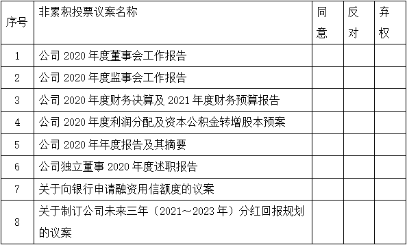 兹委托 先生(女士)代表本单位(或本人)出席2021年4月29日召开的贵公司2020年年度股东大会,并代为行使表决权。