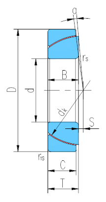 产品特点:外圈材料为轴承钢,淬火,球面粘贴PTFE编织物;内圈材料为轴承钢,淬火,球面镀硬铬。