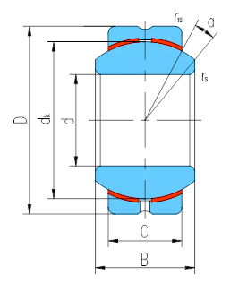 产品特点:外圈材料为碳钢,镶有青铜衬垫;内圈材料为轴承钢,淬火,球面镀硬铬。