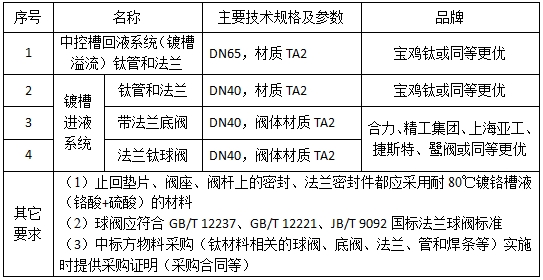 自动镀铬生产线现有镀槽-中控槽镀液循环系统塑料材质管道(管道、接头与阀体)使用到一定年限老化,其中的溢流管路、回液管路及阀件将更新为钛材料。