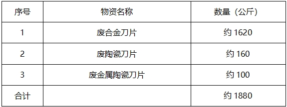 (三)项目内容:福建龙溪轴承(集团)股份有限公司废刀片出售,总量约1880公斤。