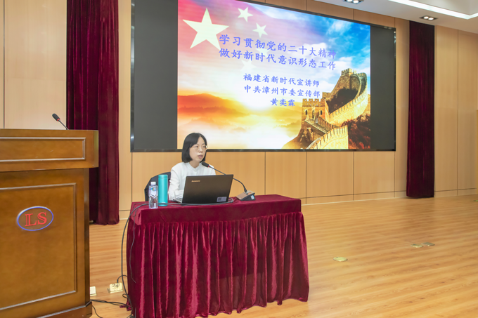 为深入开展学习贯彻席大大新时代中国特色社会主义思想主题教育,进一步提高意识形态工作水平,东升国际官网入口集团举办意识形态专题辅导讲座,邀请漳州市委宣传部理论科科长黄奕霖作《深入学习领会党的二十大精神 严格落实意识形态工作责任制》专题辅导讲座。集团公司高管、总经理助理、全体党员及网评员参加。