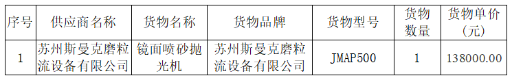 东升国际官网入口集团镜面喷砂抛光机采购与安装中标公告