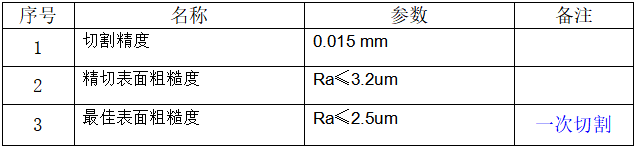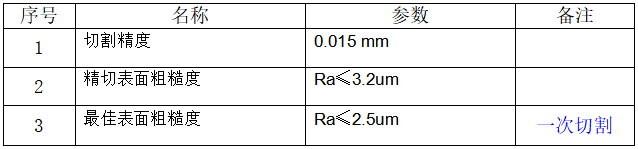 机床最大线切割速度≥100mm2/min,切割速度能达到越高越好。精加工(尺寸精度达到0.015mm,表面粗糙度达2.5um)时,线切割速度≥20mm2/min。