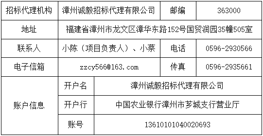 名 称:漳州诚毅招标代理有限公司