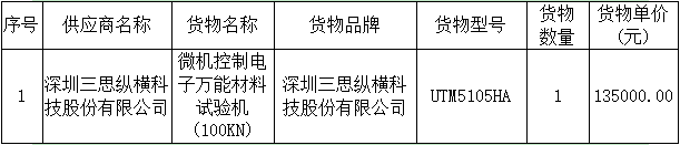 微机控制电子万能材料试验机(100KN)采购与安装中标公告